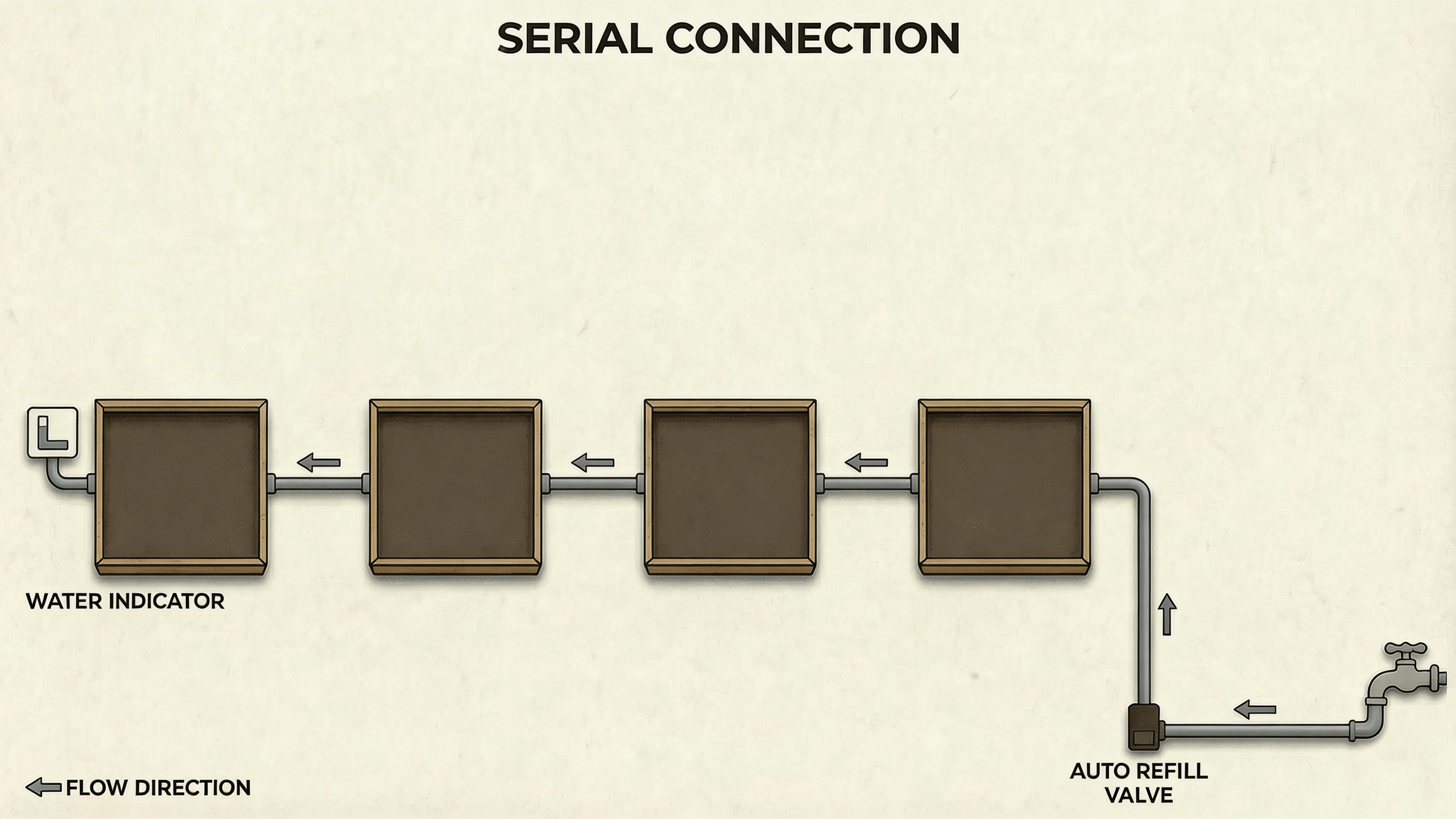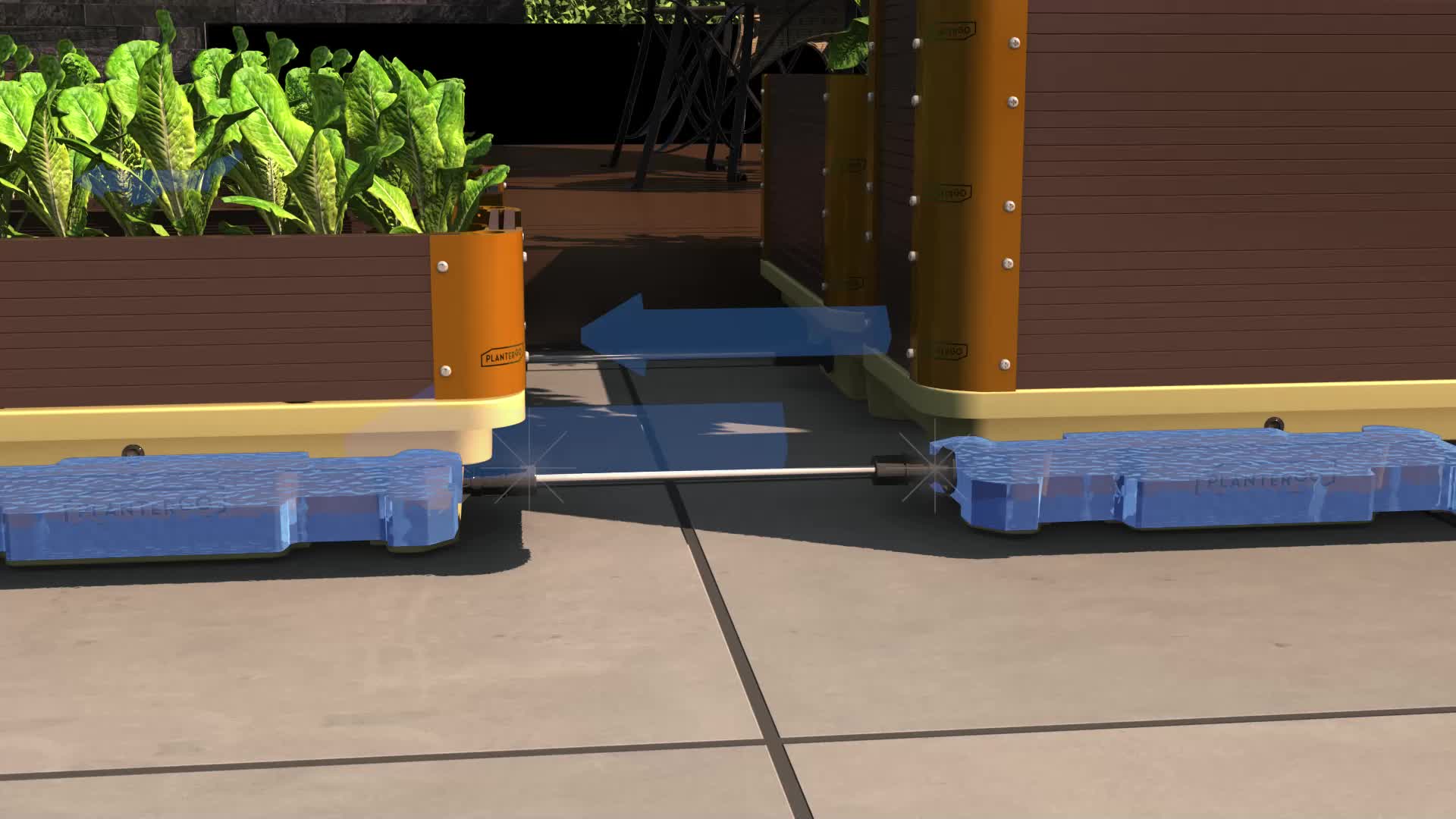 Link all your planters into a single water network. Each planter connects to the next through system connectors, creating a unified irrigation system.